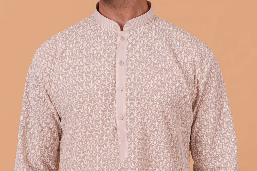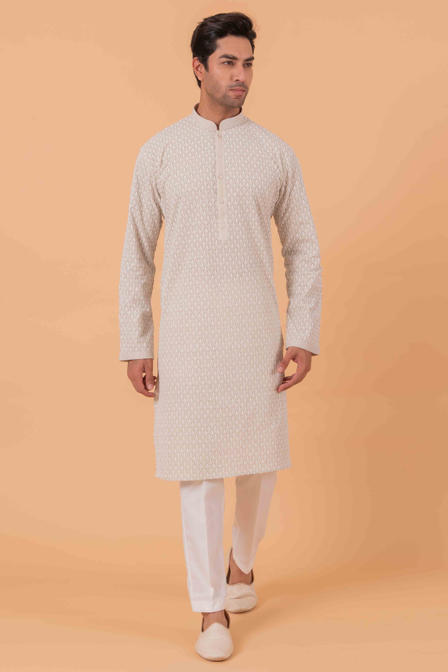 Shop Light Gold CHIKANKARI KURTA PAJAMA online-10492