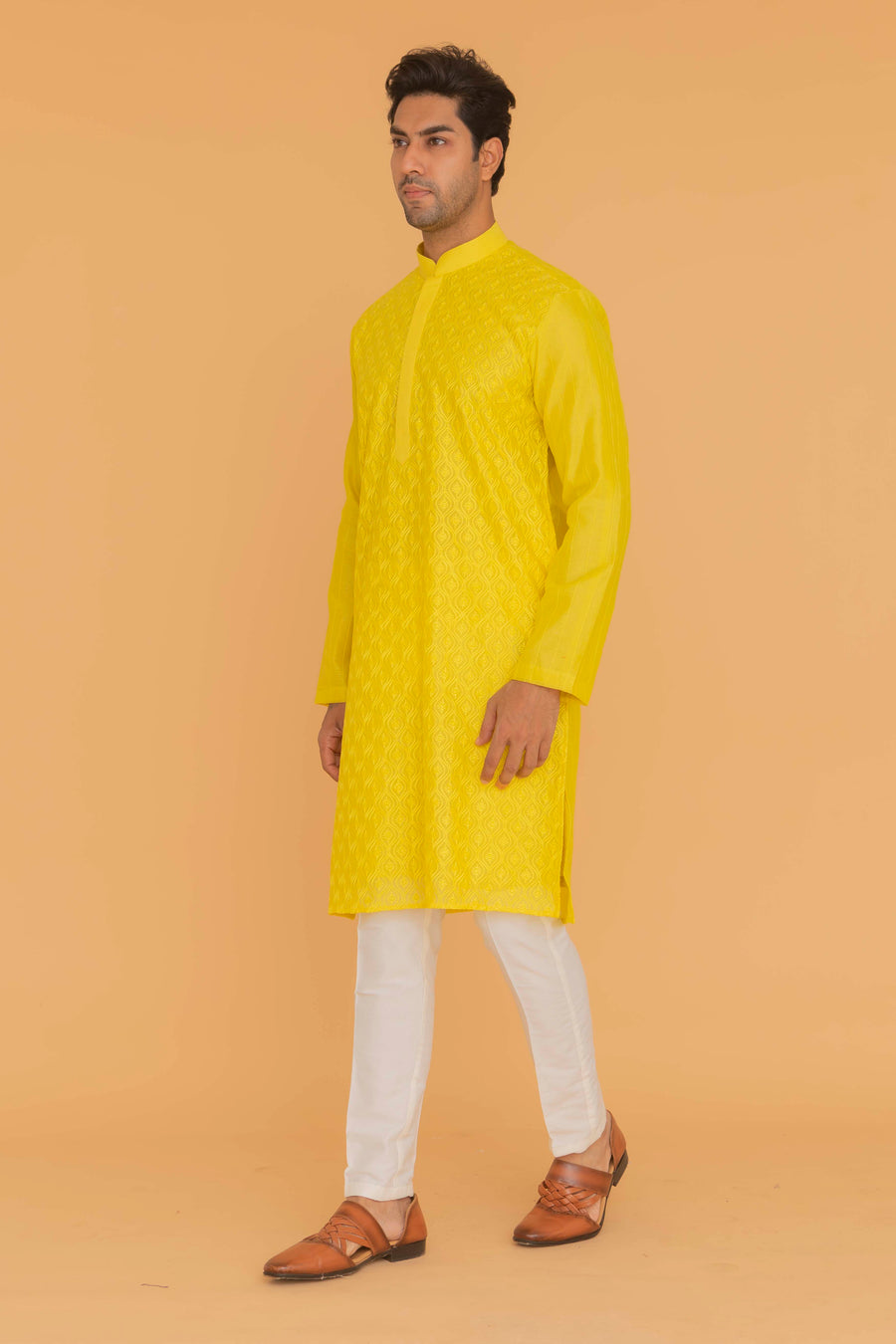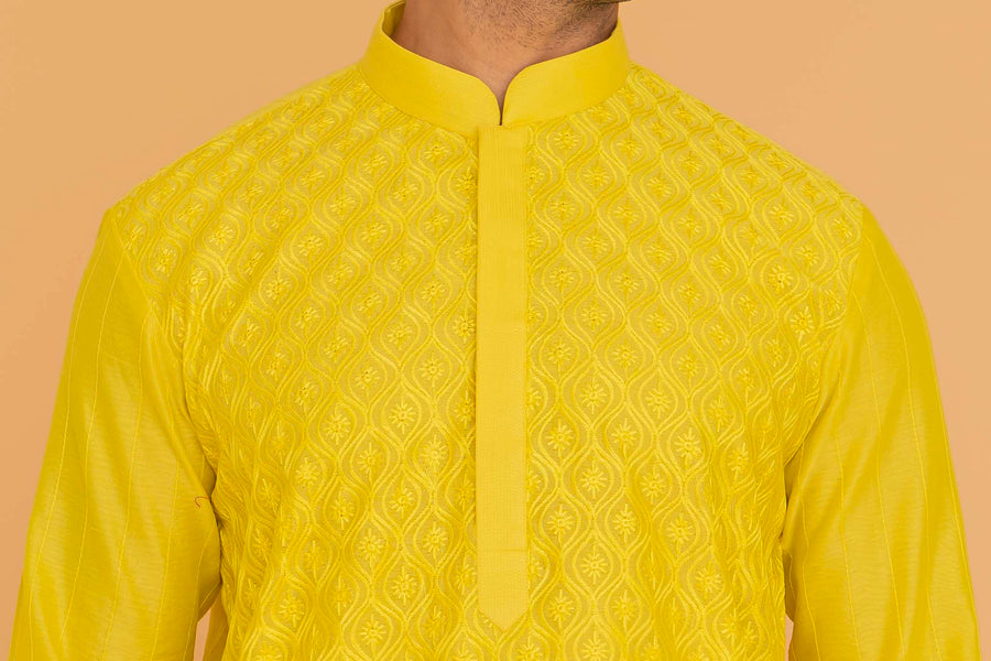 Shop YELLOW EMBROIDERED KURTA PAJAMA online-11509