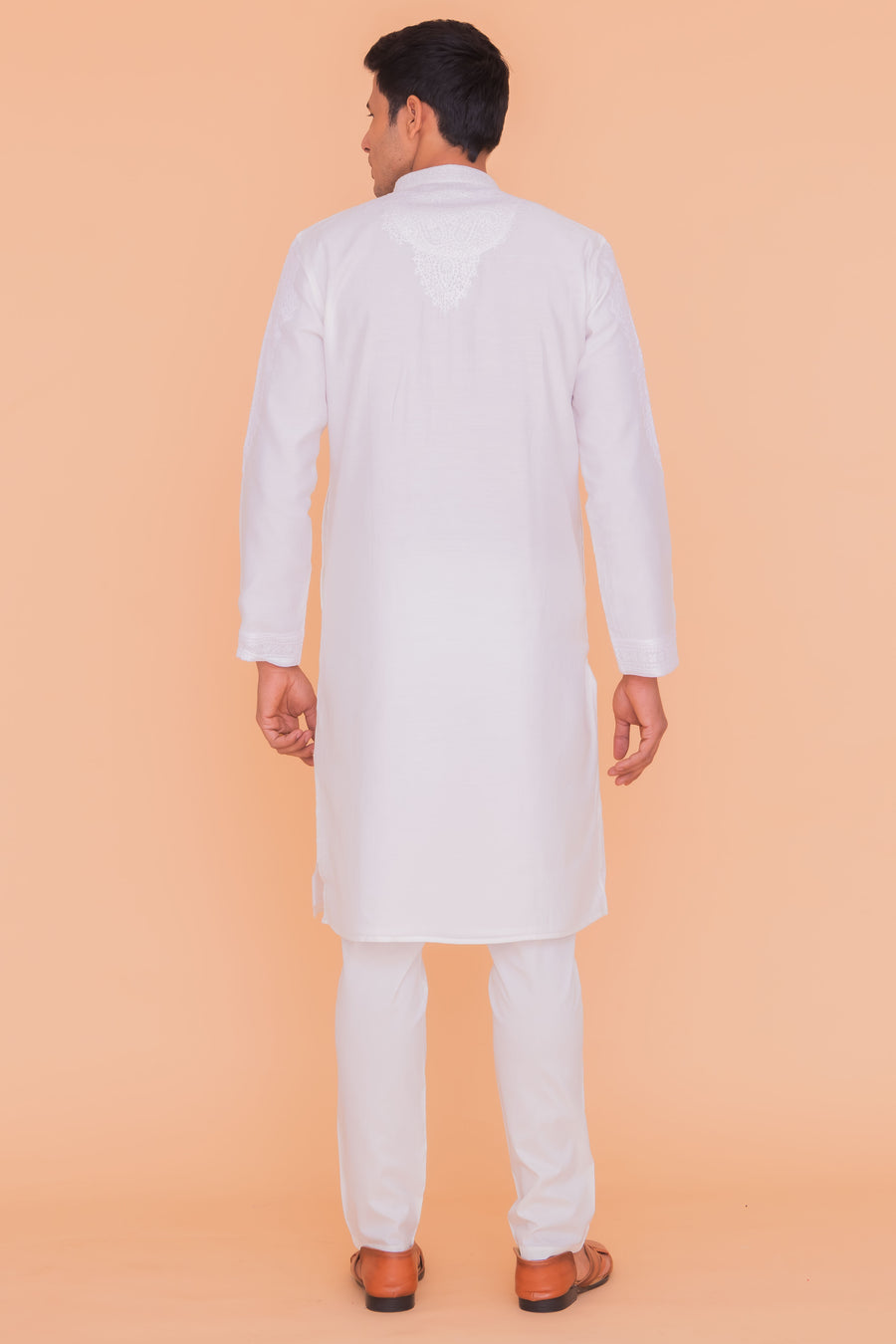 Shop CREAM WHITE EMBROIDERED KURTA PAJAMA online-12163