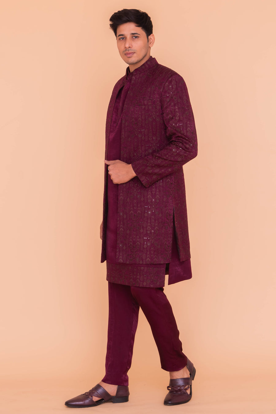 Shop WINE RED INDO JACKET 3PCS online - moha-inj3-er-3306