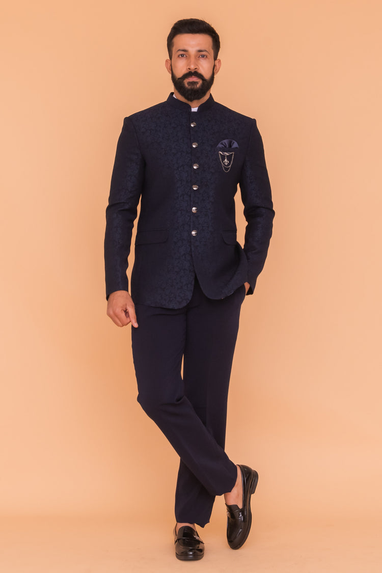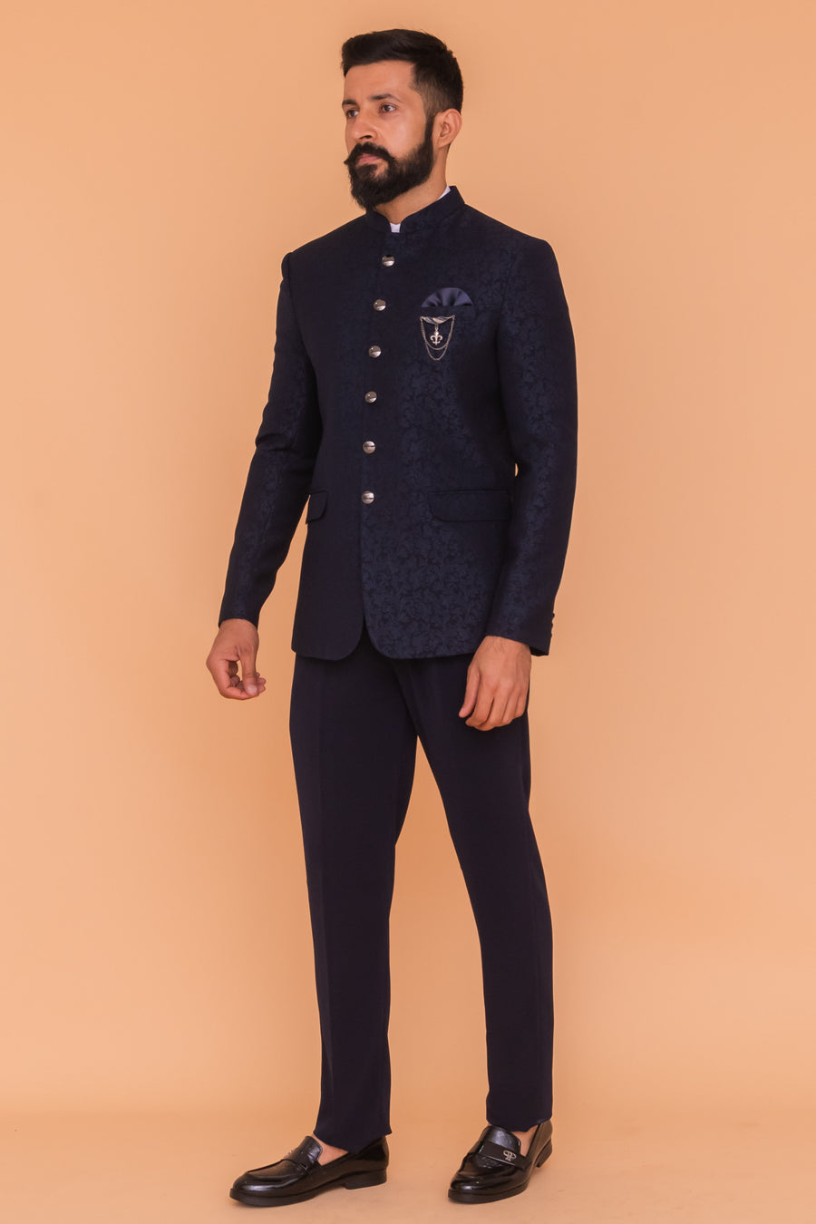 Shop NAVY BLUE PRINTED JODHPURI SUIT online-11553