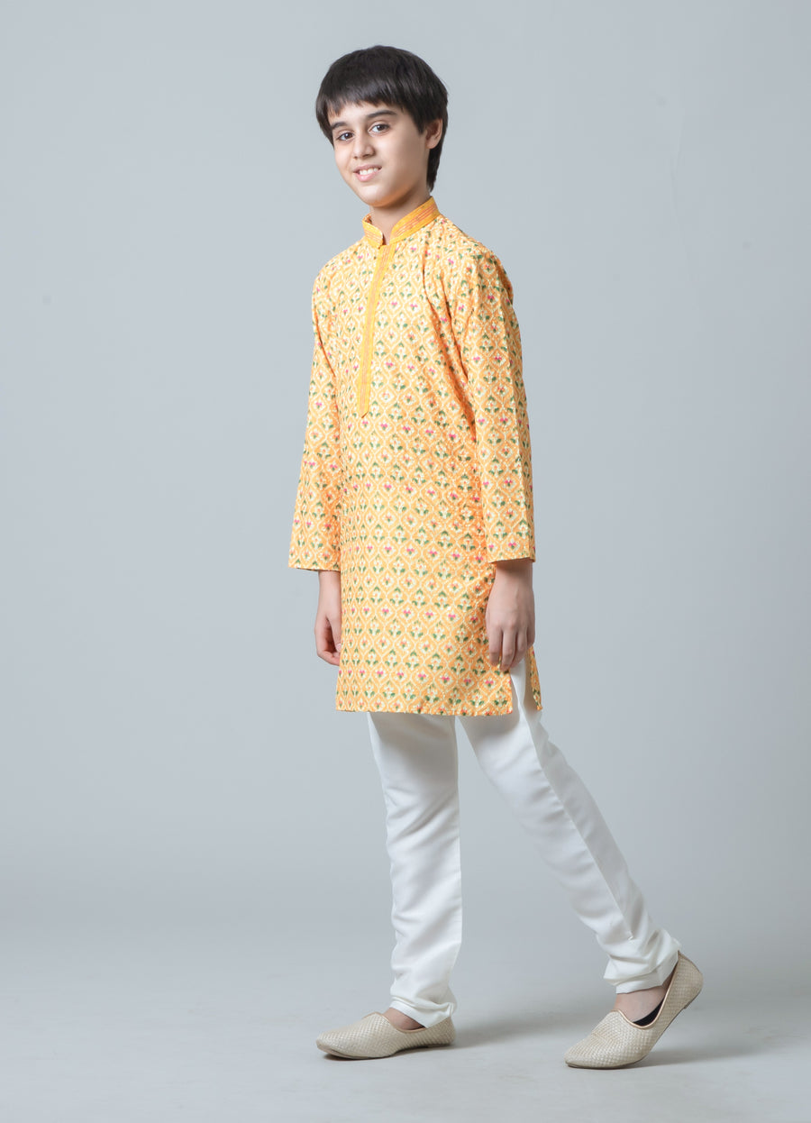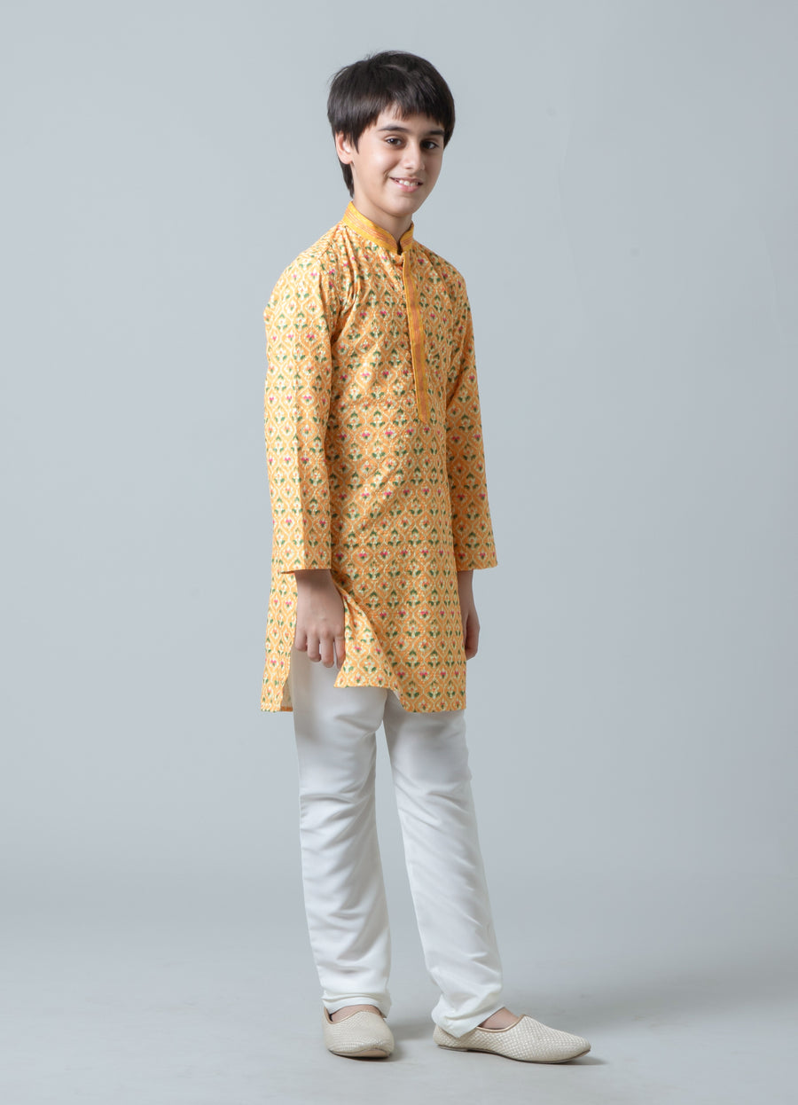 Shop YELLOW KIDS PRINTED KURTA PAJAMA online-10991