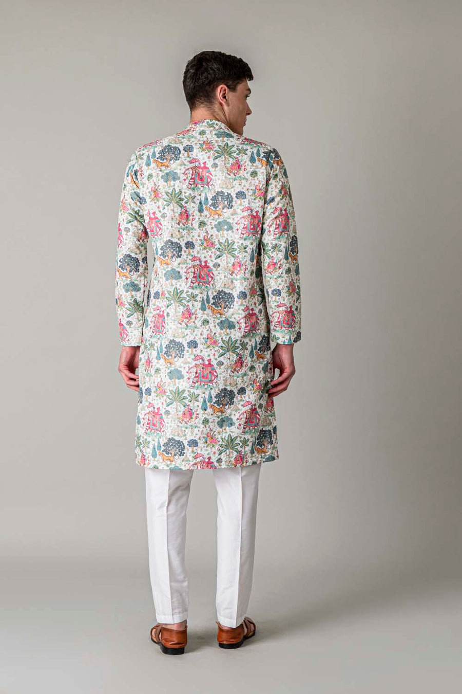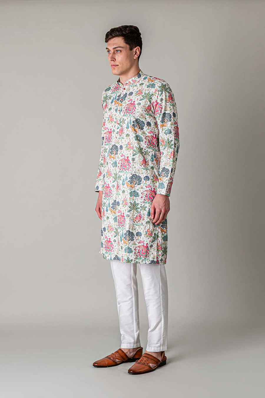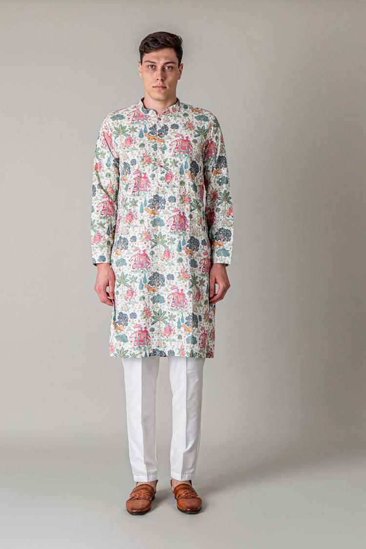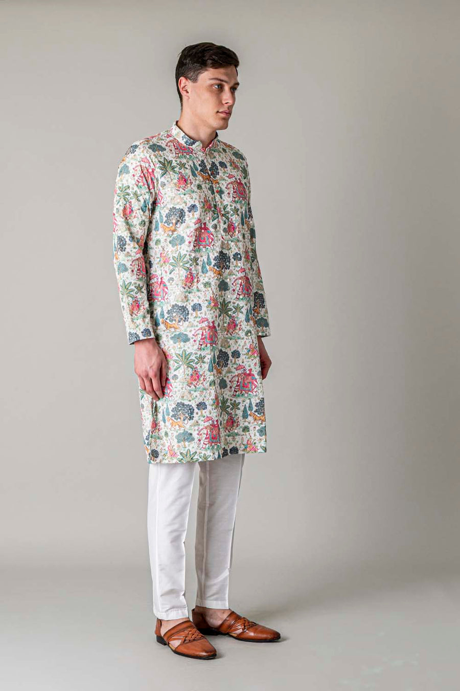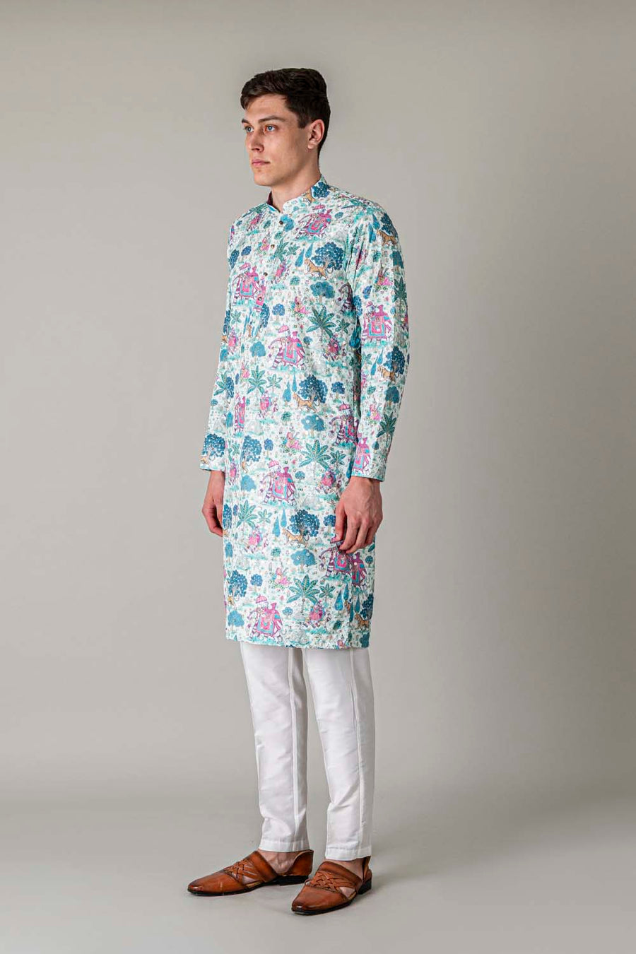Shop MEHANDI GREEN MLS PRINTED KURTA PAJAMA online - 13637