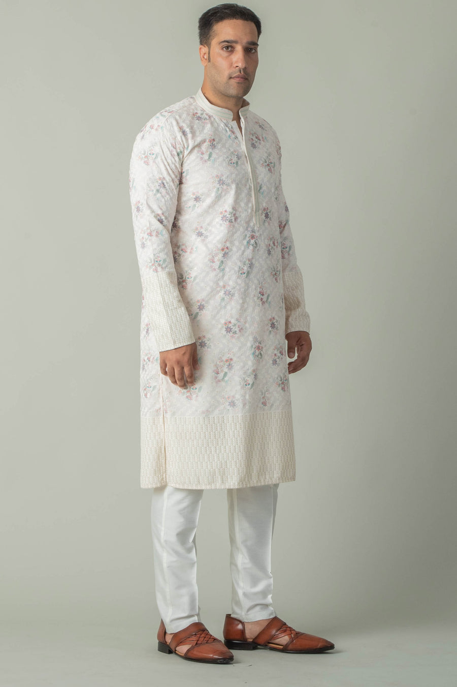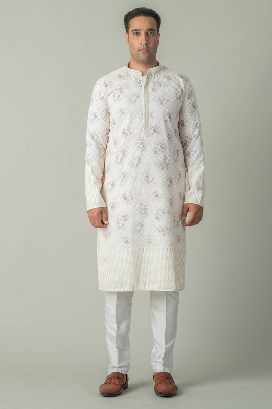 Shop CREAM WHITE PRINTED KURTA PAJAMA online-12993