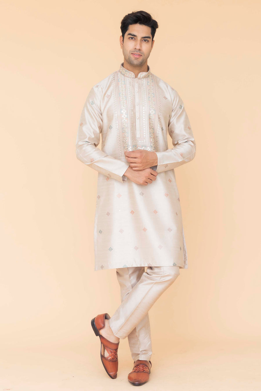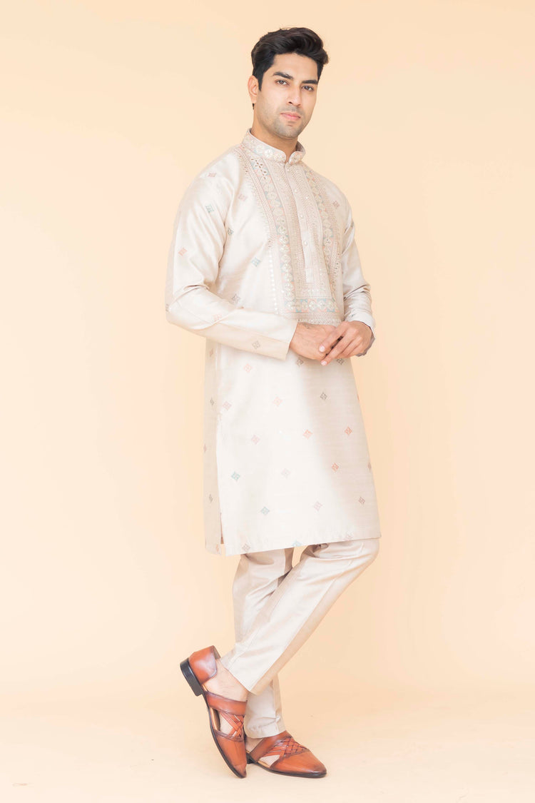 Shop LIGHT GOLD EMBROIDERED KURTA PAJAMA online-12326