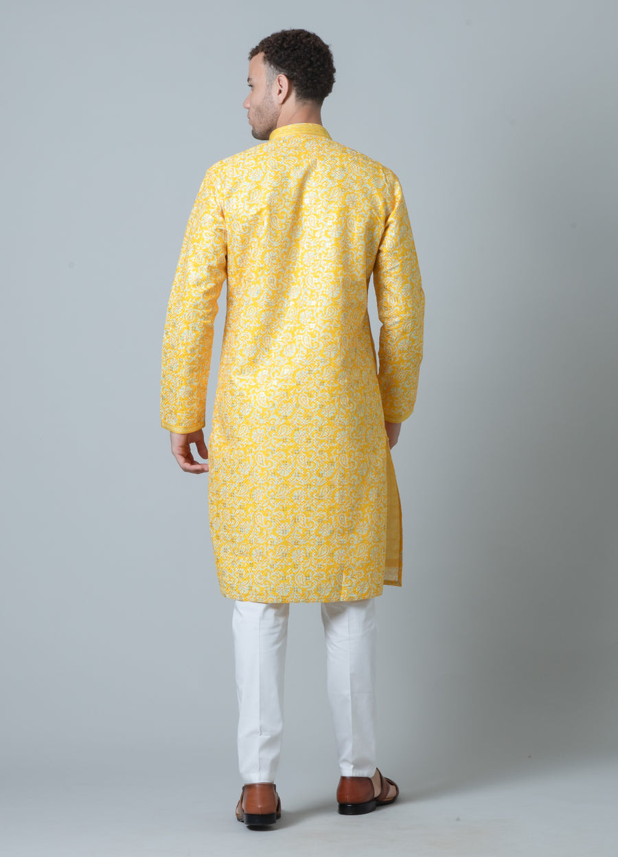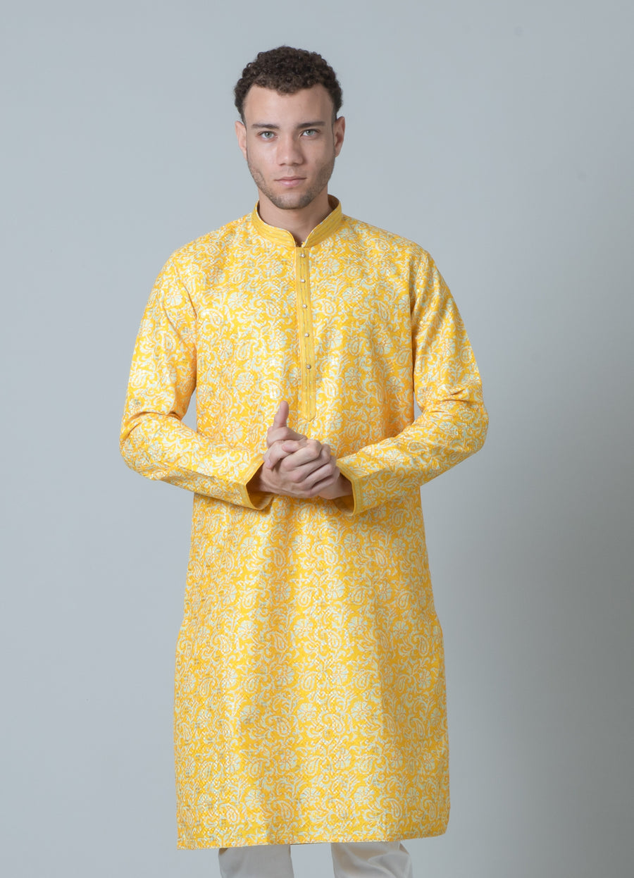 Shop MUSTARD YELLOW PRINTED KURTA PAJAMA online-12014