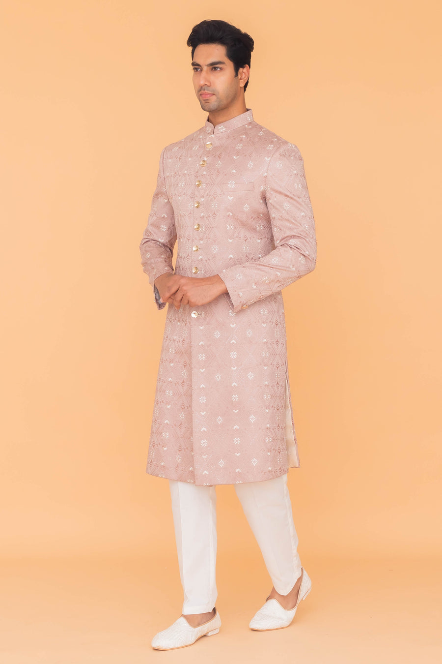 Shop ONION PINK SHERWANI 1PCS online - 222069