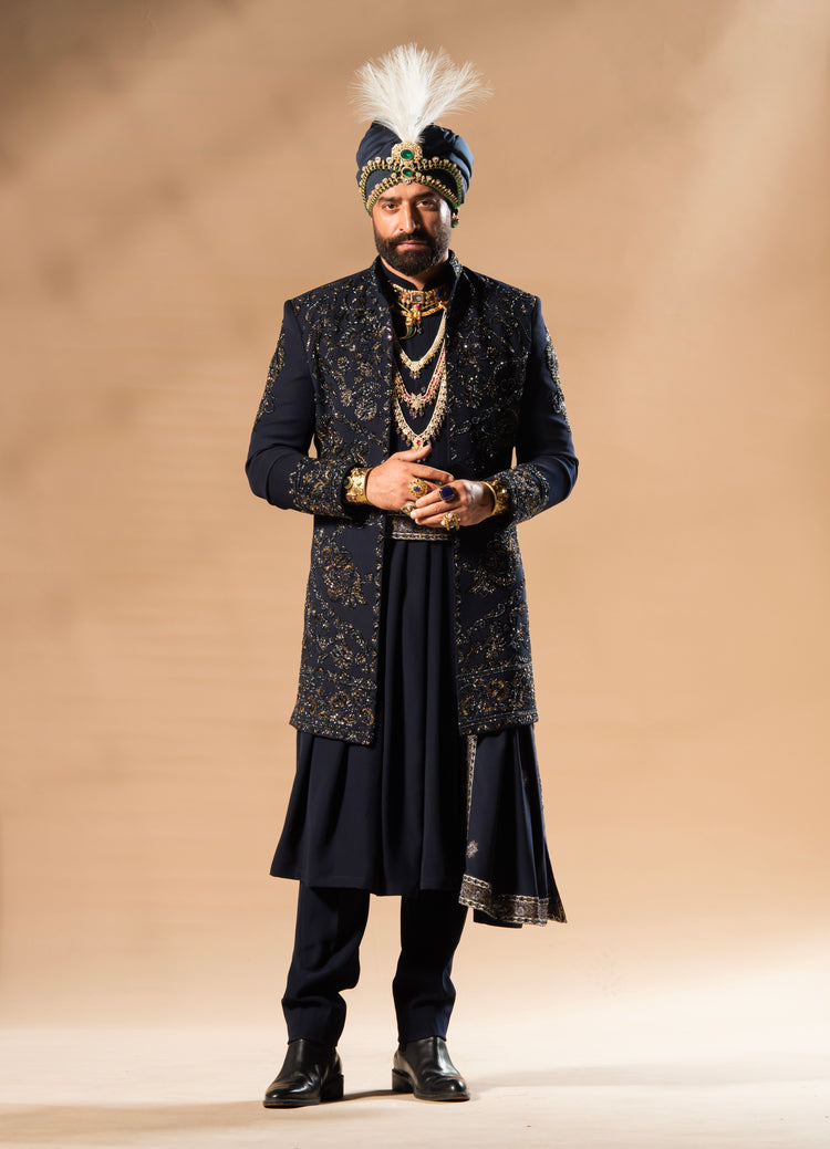 Rajwada NBU Imported fabric Indo Western embellished with Resham work, Zardozi, Zari Handwork, inspired by heritage splendor.