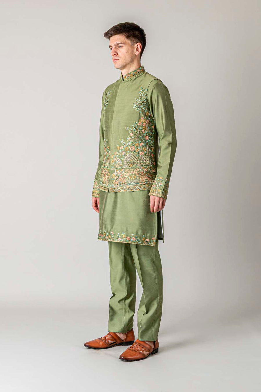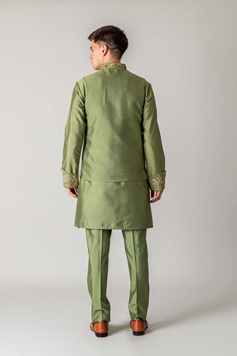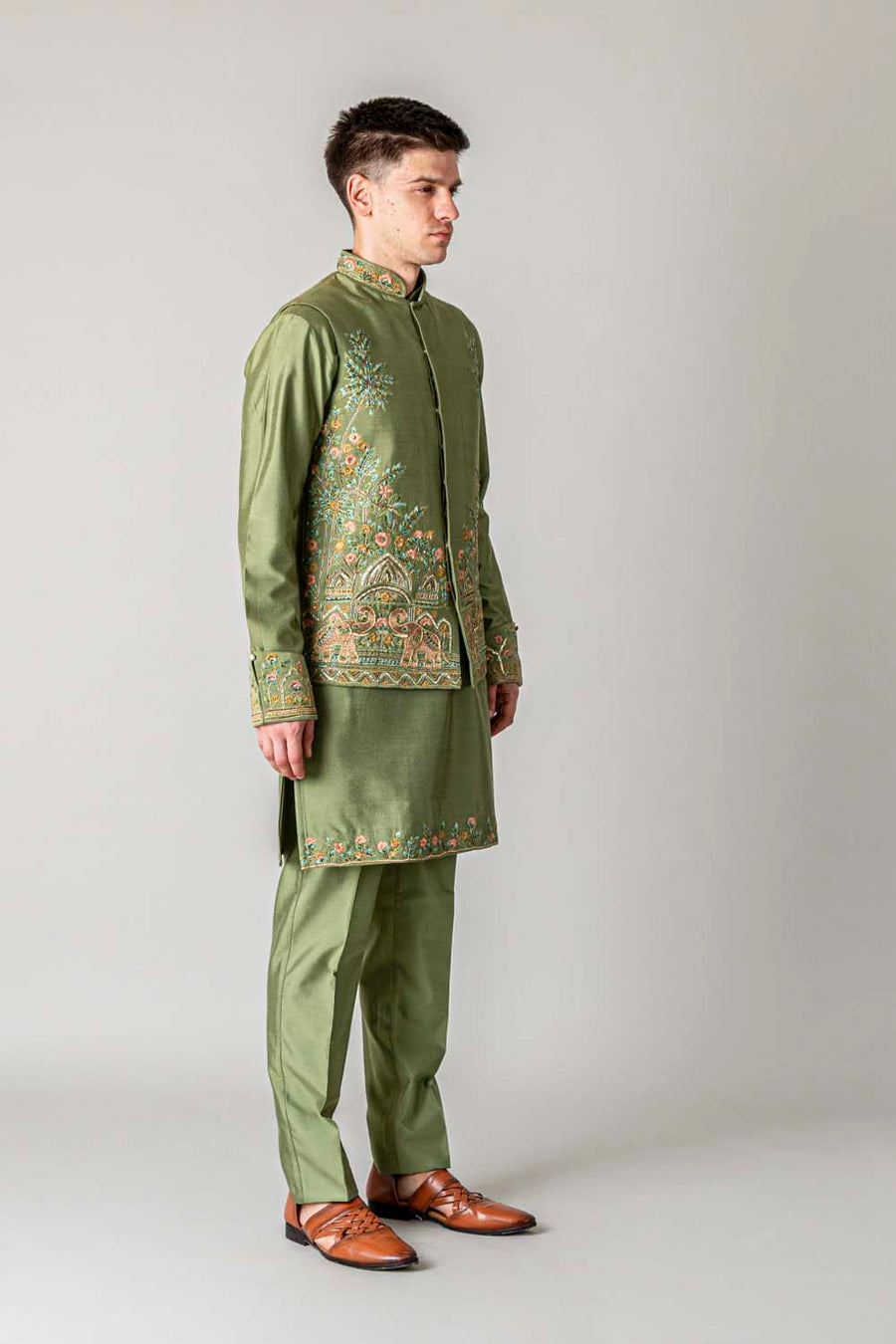 Shop MEHANDI GREEN KURTA JAWAHAR SET online-11854